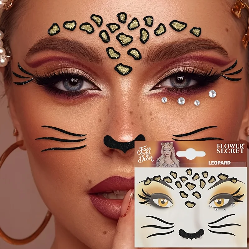 1 Sheet Cartoon Face Stickers Clown Cat Leopard Butterfly Ice Glitter Face Art Decor Makeup Stickers Birthday Party Gifts  Read more
