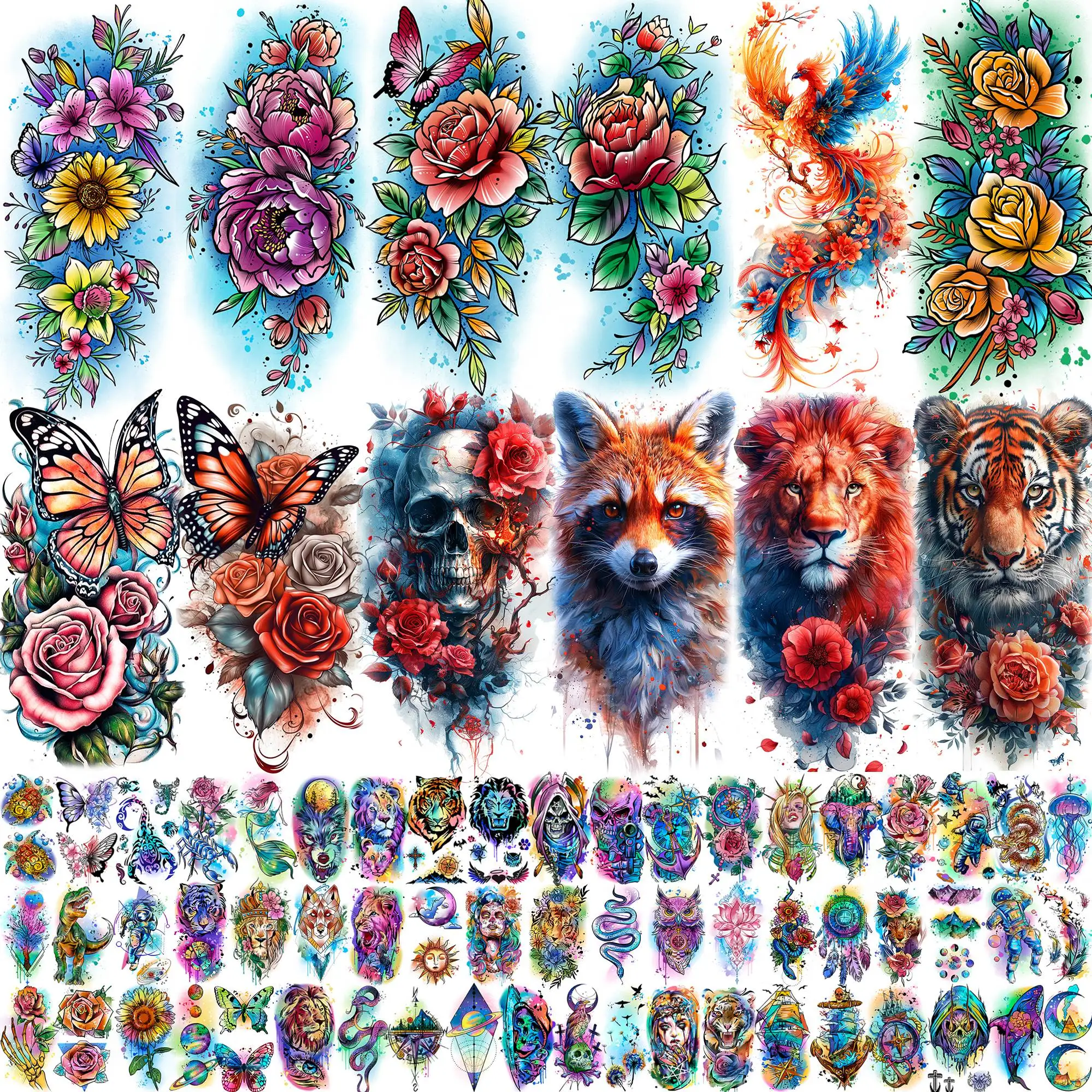 70 Sheets Watercolor Peony Rose Flowers Temporary Tattoos For Women Butterfly Animals Tatoos Realistic Fake Arm Tattoo Stickers