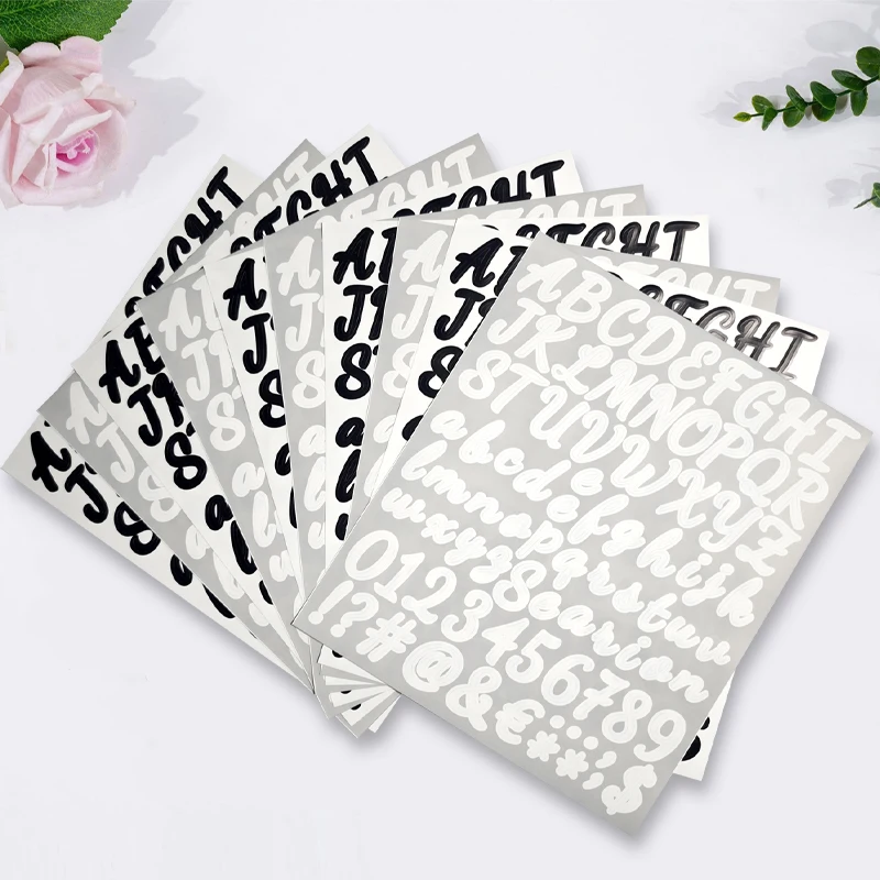 10 Sheets Self-Adhesive Black Silver Glitter Capital Letter Stickers Number Alphabet Vinyl Decals Kit
