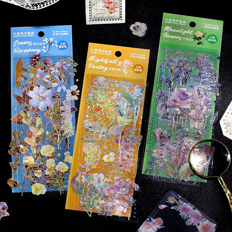 3 Sheets Vintage Flower Sticker Set Foil Gold Sliver Journaling Stickers For Scrapbooking Card Making Envelopes