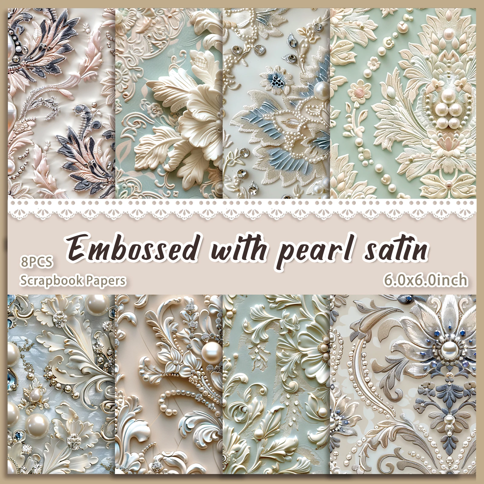Embossed With Pearl Satin Scrapbook Paper Pad 8 Sheets Art Craft Pattern Paper For Scrapbooking Assorted Festive Designs