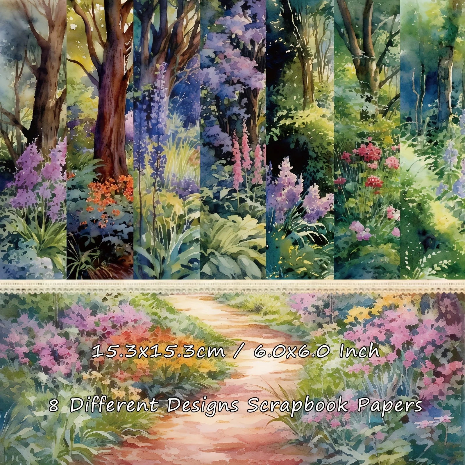 8 Sheets(8 Patterns) Forest Theme Scrapbook Paper Pads For Mini Gift Packaging Junk Journal DIY Art Craft Collage Papers