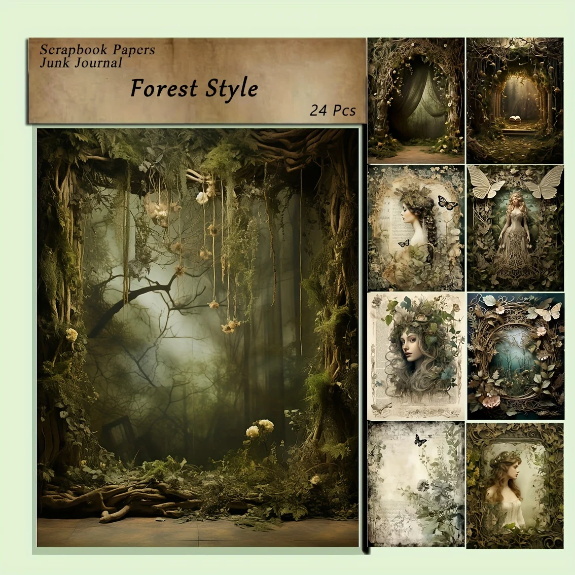 24 Sheets/Pack Forest Theme Scrapbook Paper for Junk Journal, Card Making, DIY Crafts Decorative Papers Letter Writing Papers