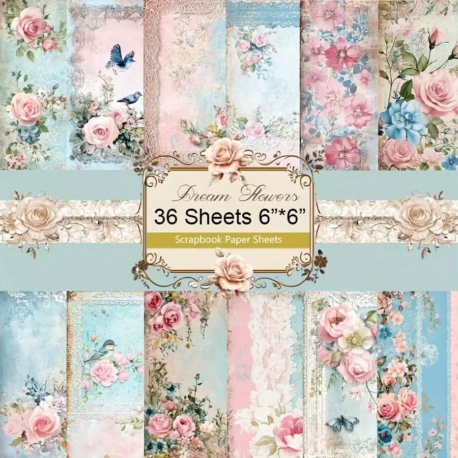 36 Sheets Dream Flowers Scrapbook Paper Pack, Stationery Vintage Art Craft Pattern Paper For Junk Journal Planner Cardstock Pape