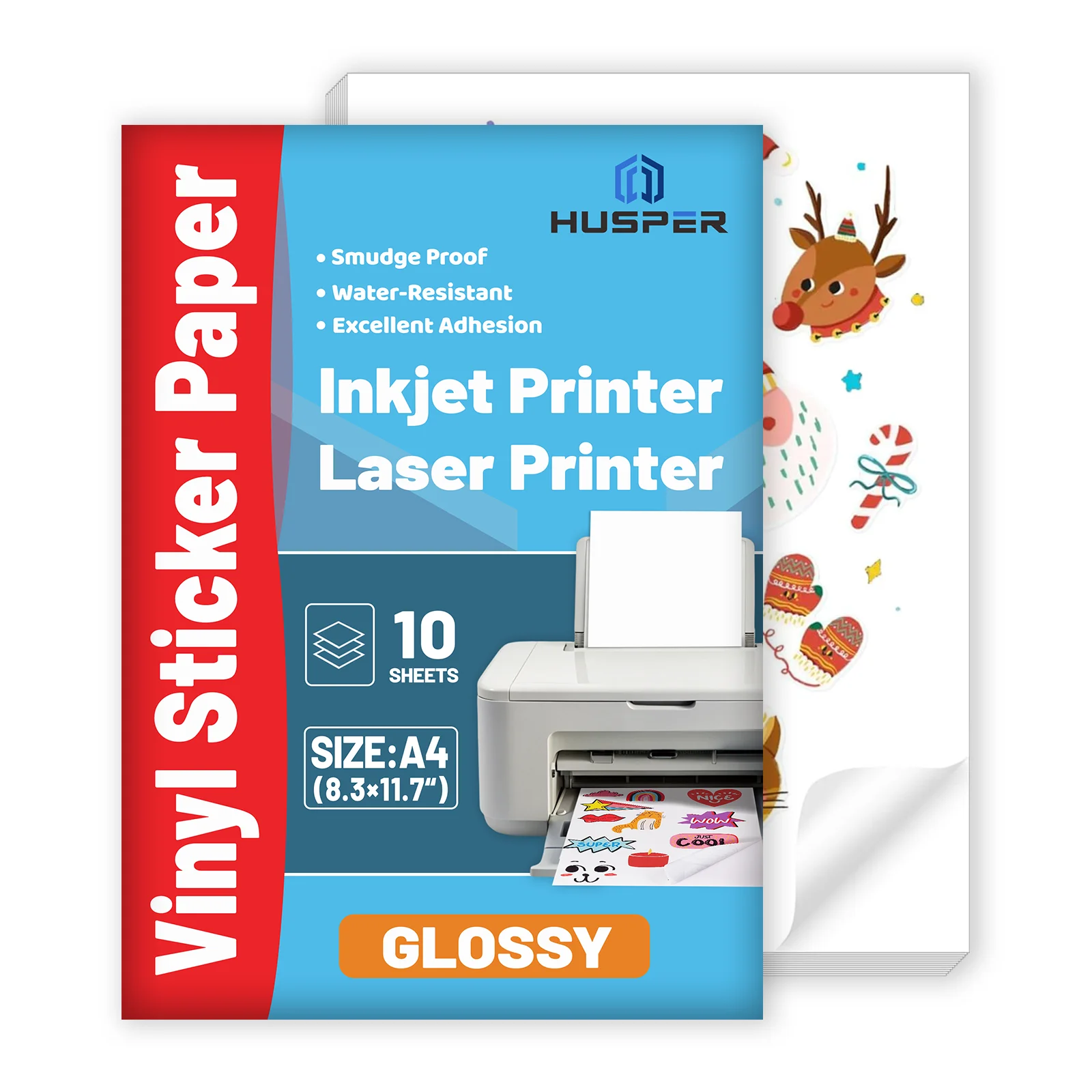 10 Sheets Glossy White Vinyl Sticker Sheets - A4 Size (8.3 x 11.7 inches), Self-adhesive, Waterproof, Inkjet & Laser Printing