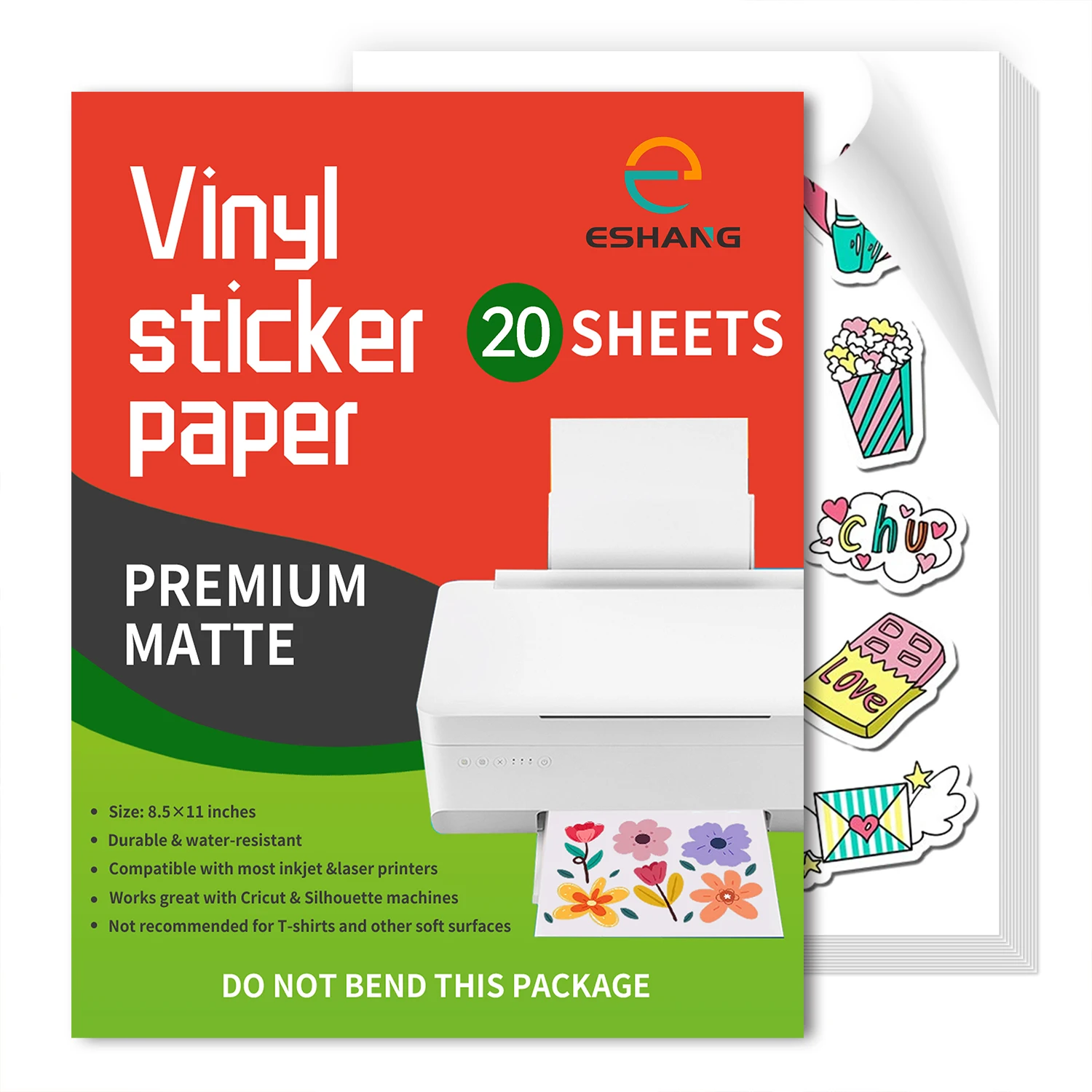 ESHANG Letter Size Printable Vinyl Sticker Paper for Inkjet Printer Self-Adhesive Sheets 8.5"x11" Dries Quickly