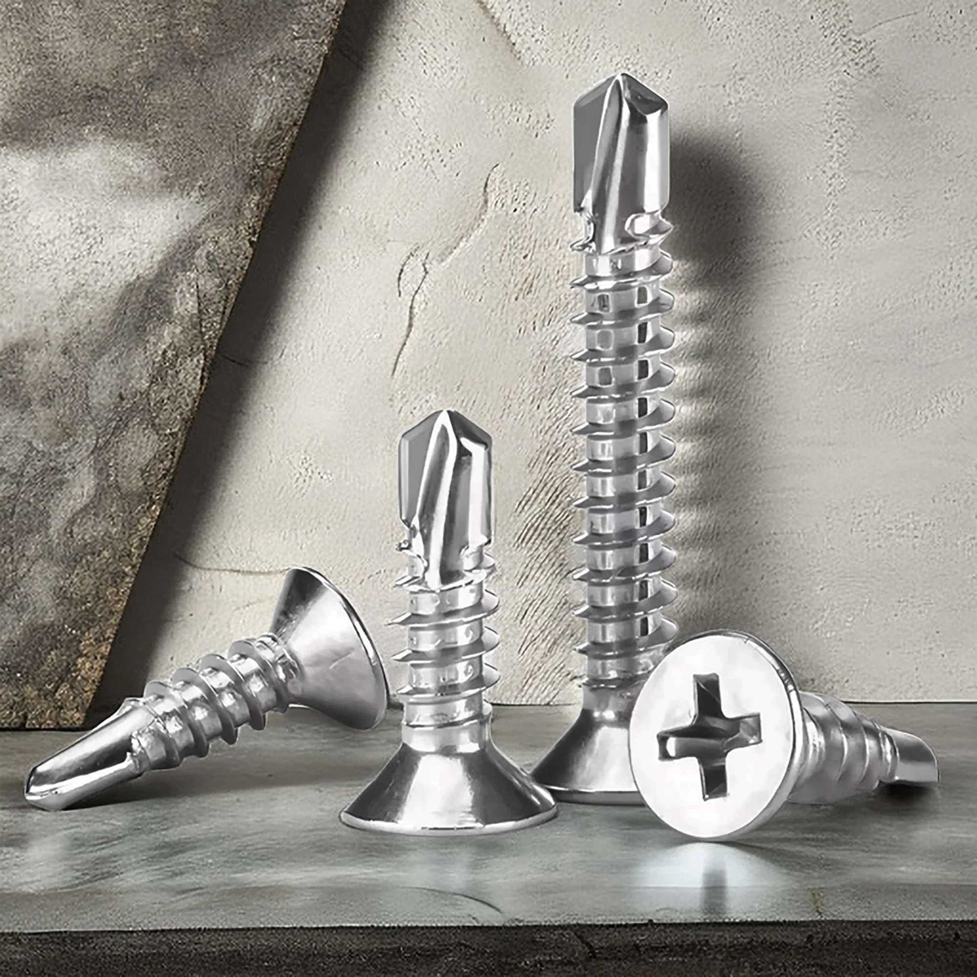 50PCS #8 M4.2 410 Sheet Metal Self-Tapping Screws 410 Stainless Steel Flat Head High-Strength Quick Self-Drilling Screws