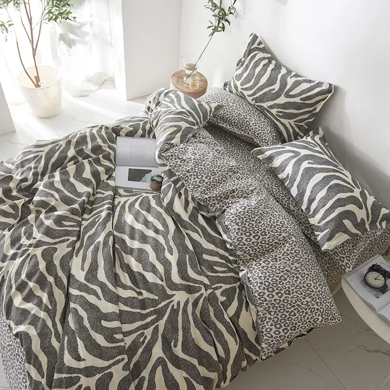 Soft Silky Skin Friendl natural Eucalyptus Fiber Lyocell Bedding Set Forest Plants Leopard Duvet Cover Set Bed Sheet Pillowcases