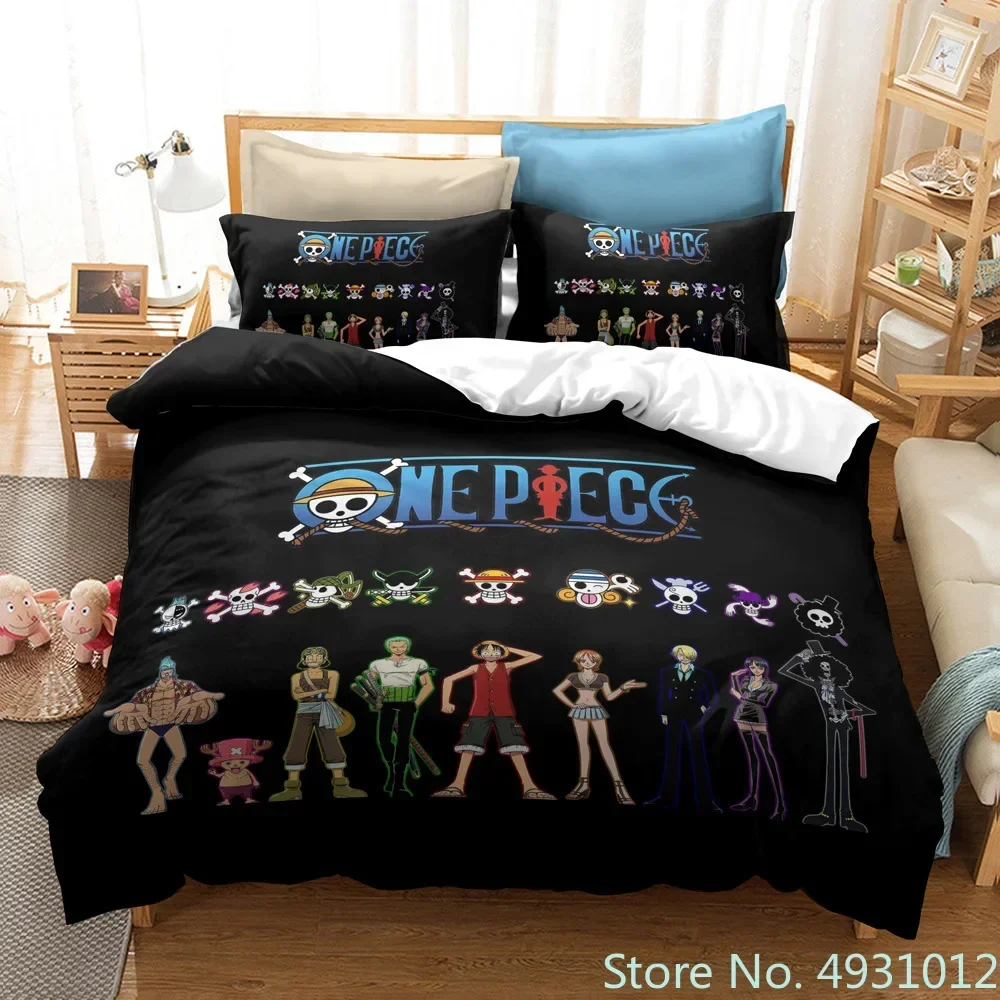 Anime One Piece Bedding Set for Kids Boys Double Duvet Cover Comforter Sets Cartoon Luffy Zoro Nami Sanji Sheet Baby Bedspreads