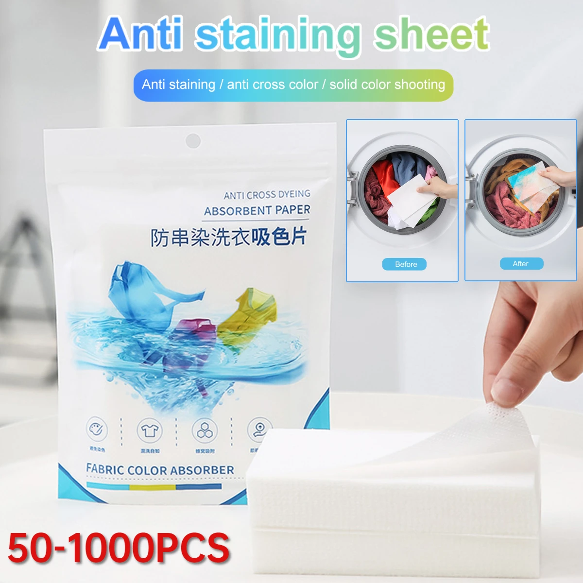 50-1000PCS Colour Catcher Sheet Color Absorption Paper Anti Cloth Dyed Leaves Laundry Color Run Remove Sheet Washing Accessories