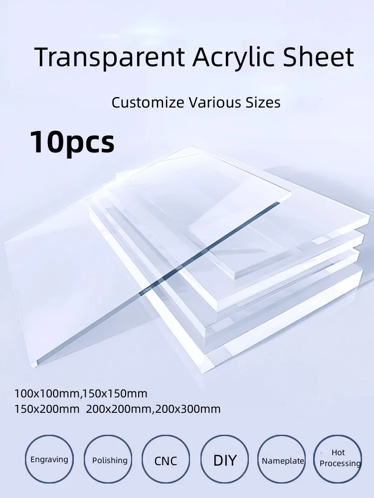 10PCS Clear Acrylic Sheet Transparent Plexiglass Sheet Processing Custom Handmade DIY Display Box