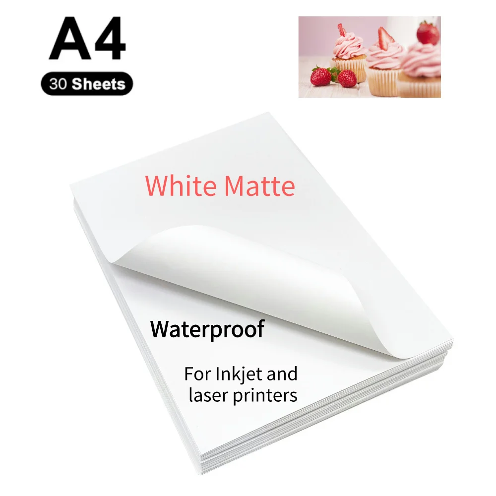 Printable Vinyl Sticker Paper 30 Sheets 100% Transparent Self-adhesive Waterproof A4 Copy Paper DIY Label for Laser Printer