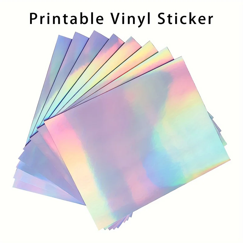 10 Sheets Holographic Printable Vinyl Sticker Paper A4 Self-adhesive Transparent White Copy Paper DIY Crafts for Inkjet Printer
