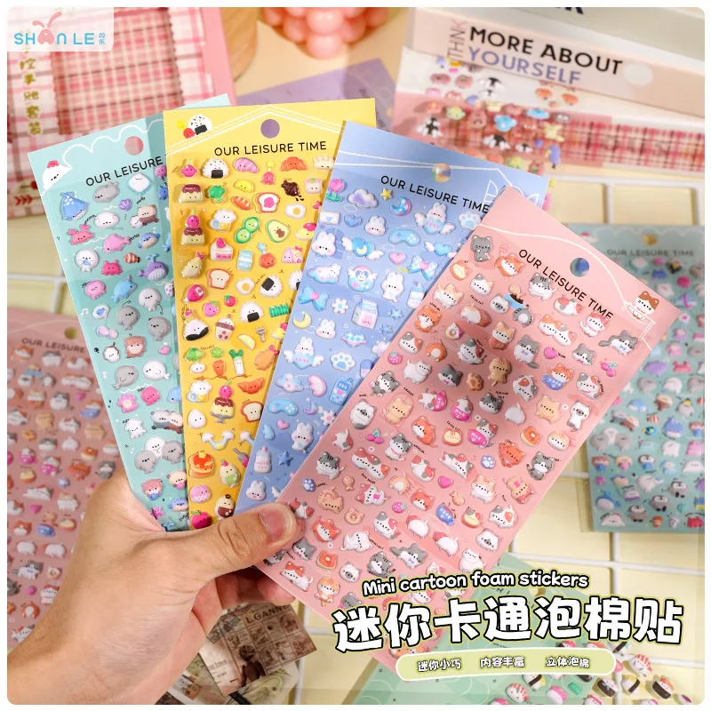 6 Sheets 3D Mini Cute Animal Japanese Style Puffy Foam Stickers, DIY Scrapbooking Guitar Phone Case Notebook Decoration