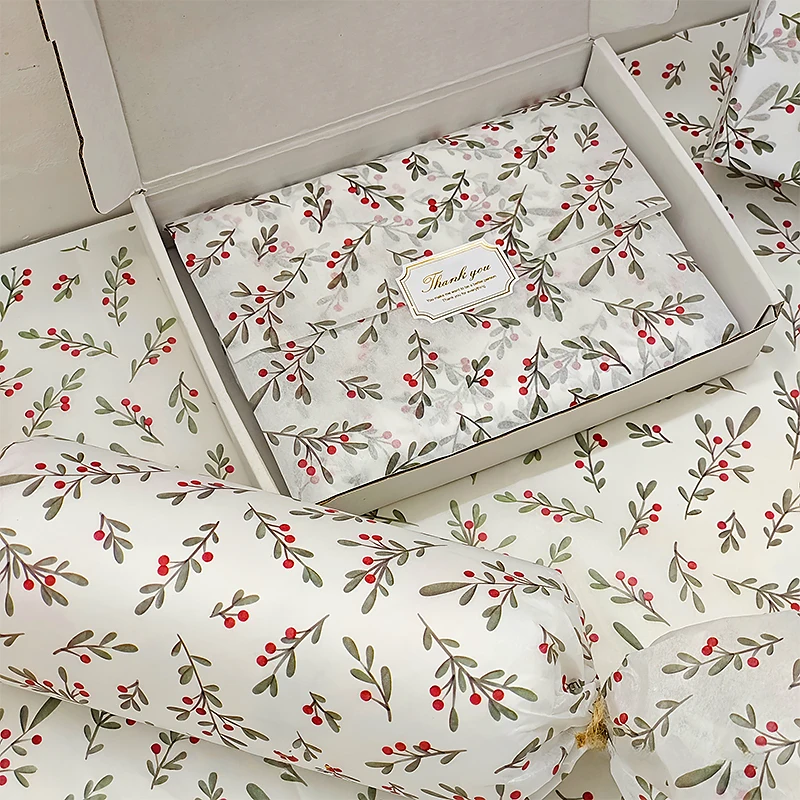 10 Sheets Leaf Print Tissue Paper - Semi-Transparent Perfect for Christmas Birthdays Weddings Valentine's Day 50x35cm