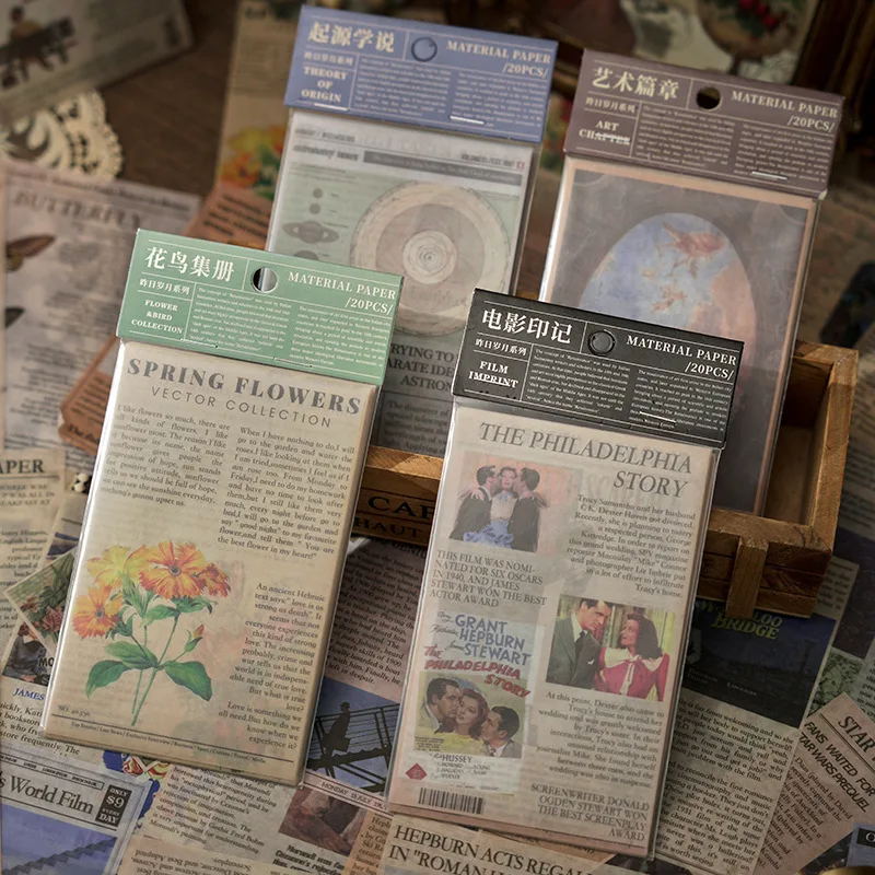 JIANQI 20 sheet Creative Scrapbook Vintage Materials Paper Combo Kit DIY Junk Journal Collage Photo Album Retro Art paper