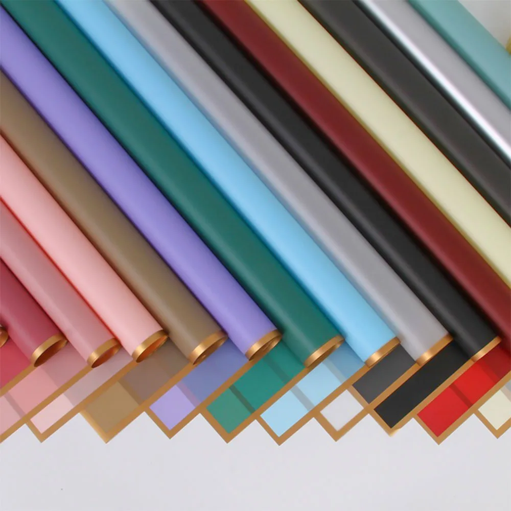 10 Sheets Flower Wrapping Paper with Golden Edges Waterproof Bouquet Packaging Ideal for DIY Weddings Birthdays Presents Package