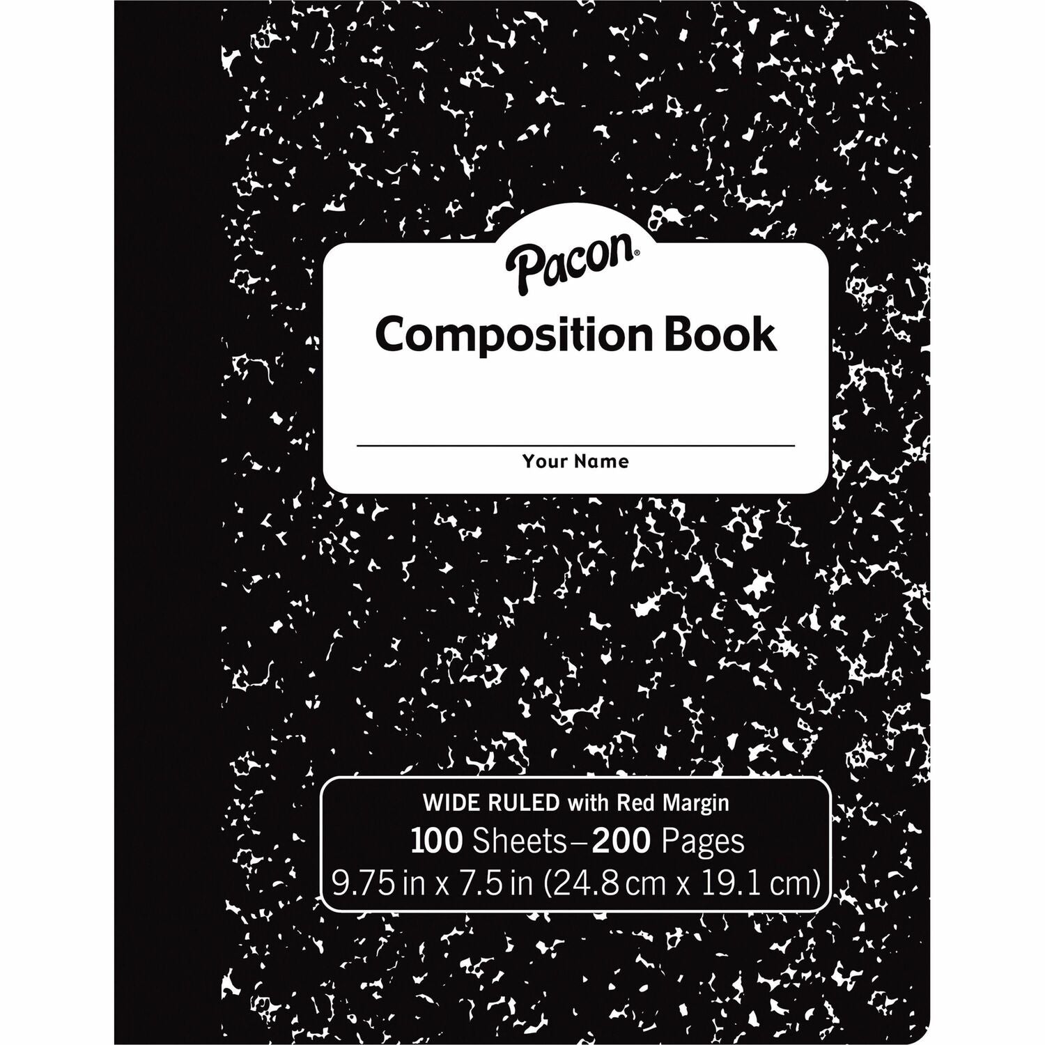 Pacon MMK37101 Compostion Book, 9-3/4" x 7-1/2", 3/8" Rld, 100 Sheets, BK/Marble PACMMK37101