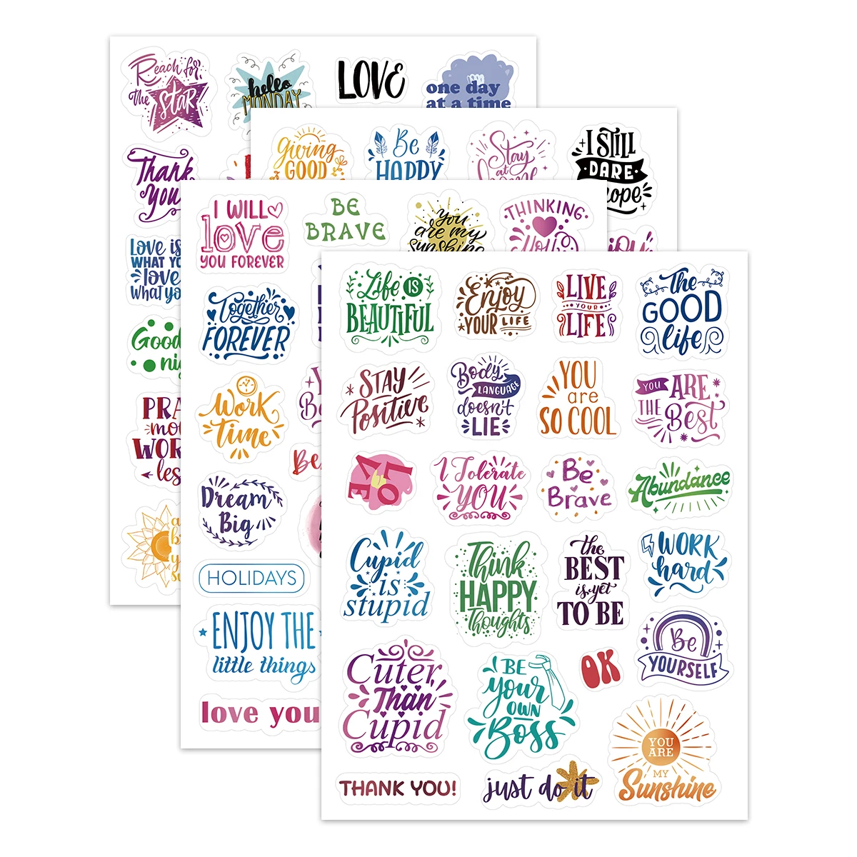 4 Sheets Inspirational Quote Stickers, Motivational Vinyl Stickers for Scrapbooking, Bottles, Laptops, Waterproof Positive Sticker