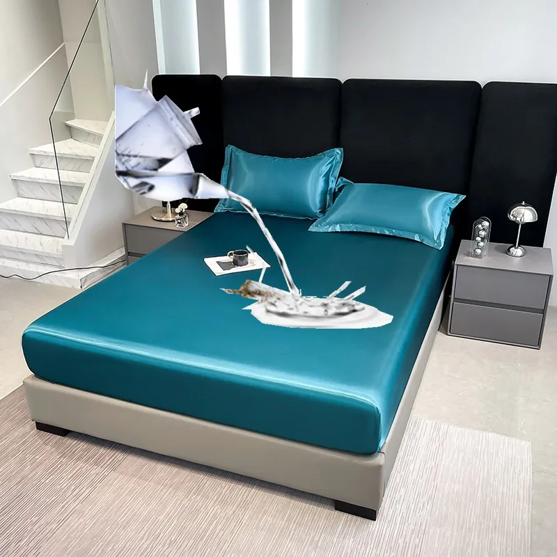 Satin Waterproof Fitted Sheet Artificial Silk Mattress Cover Solid Color Elastic Band Bed Sheet Small And Large Bed Cover