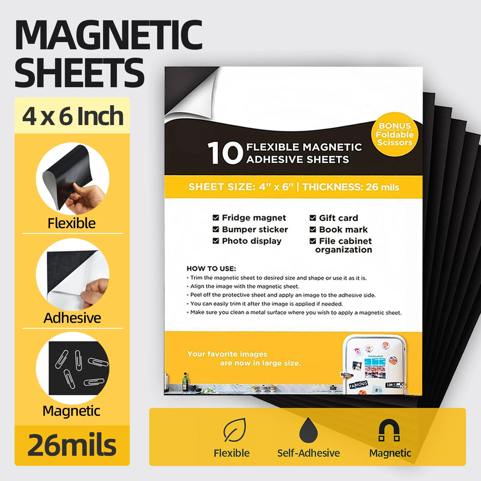 Adhesive Magnetic Sheets 4 x 6 Inch Photo Magnets, Flexible Magnet Sheets with Backing for Crafts, Photos, Pictures, Easy Peel