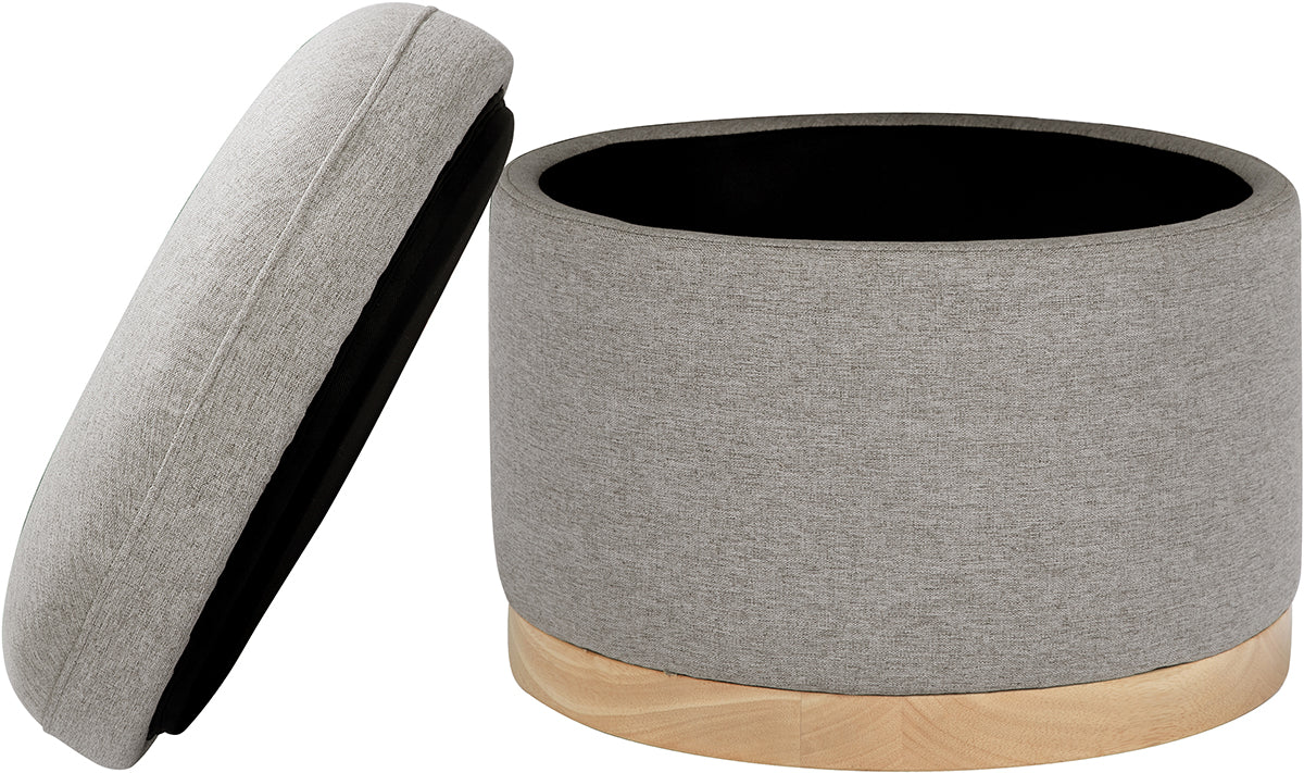 Babyletto Naka Storage Ottoman - Performance Grey Eco-Weave w/ Light Wood Base