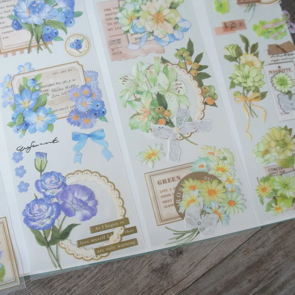 3 Sheets Fresh Flowers and Fruits Design PVC Sticker Gift Tag Birthday Wedding Gift Decoration Scrapbooking DIY Sticker