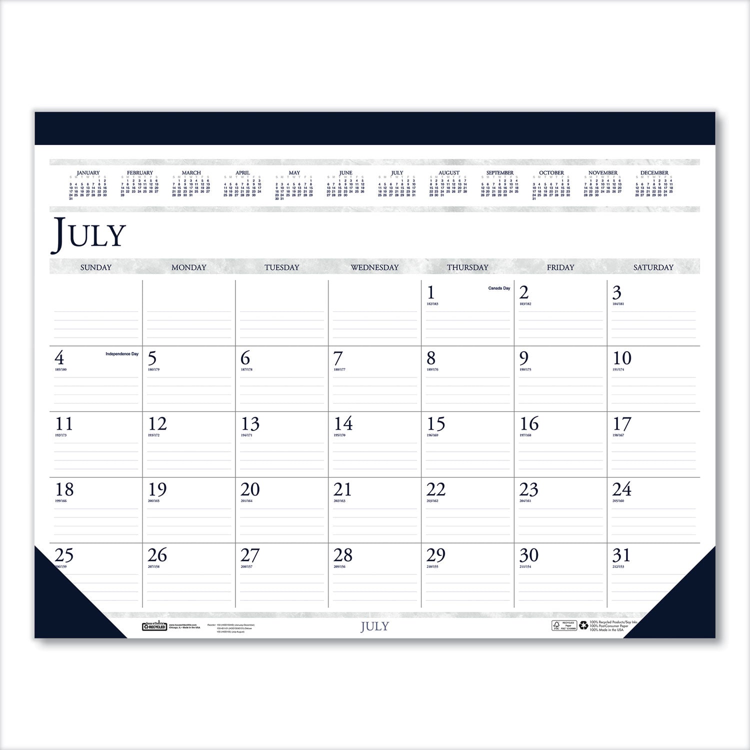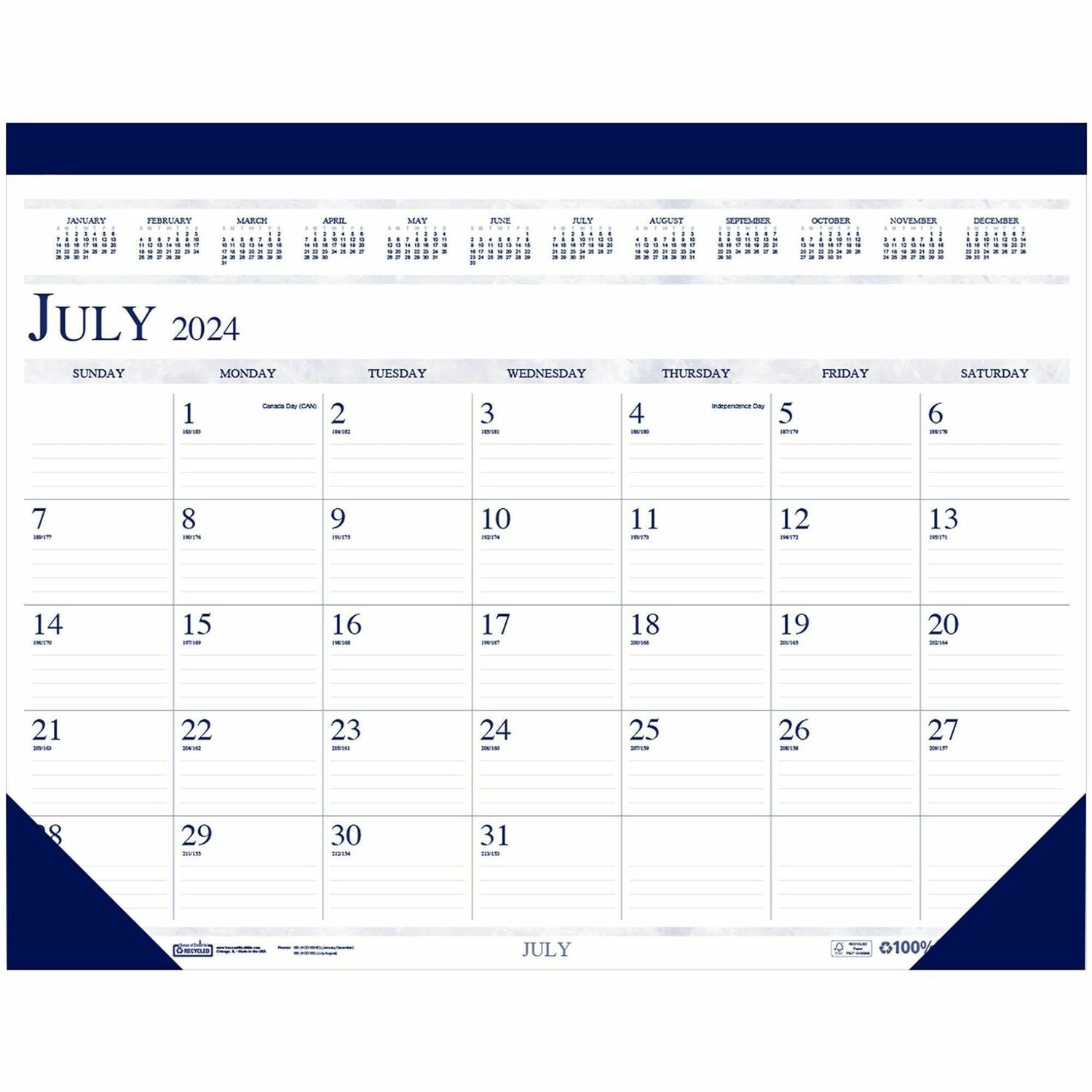 House Of Doolittle 155-HD Recycled Academic Desk Pad Calendar, 22 x 17, White/Blue Sheets, Blue Binding/Corners, 14-Month (July to Aug): 2023 to 2024
