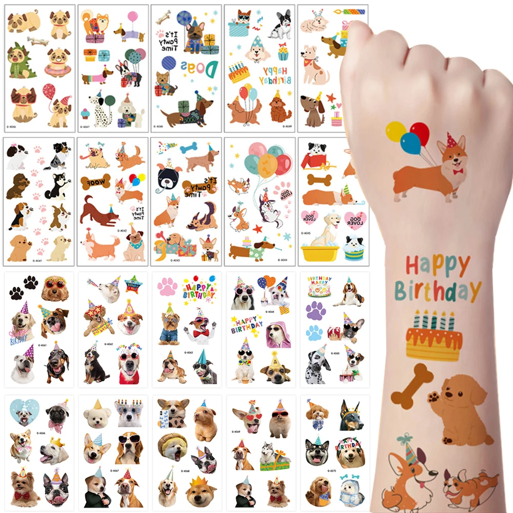10 Sheets Cute Dog Tattoos Temporary Puppy Themed Birthday Party Supplies Animals Pet Dog Tattoos Stickers For Girls Boys Gifts