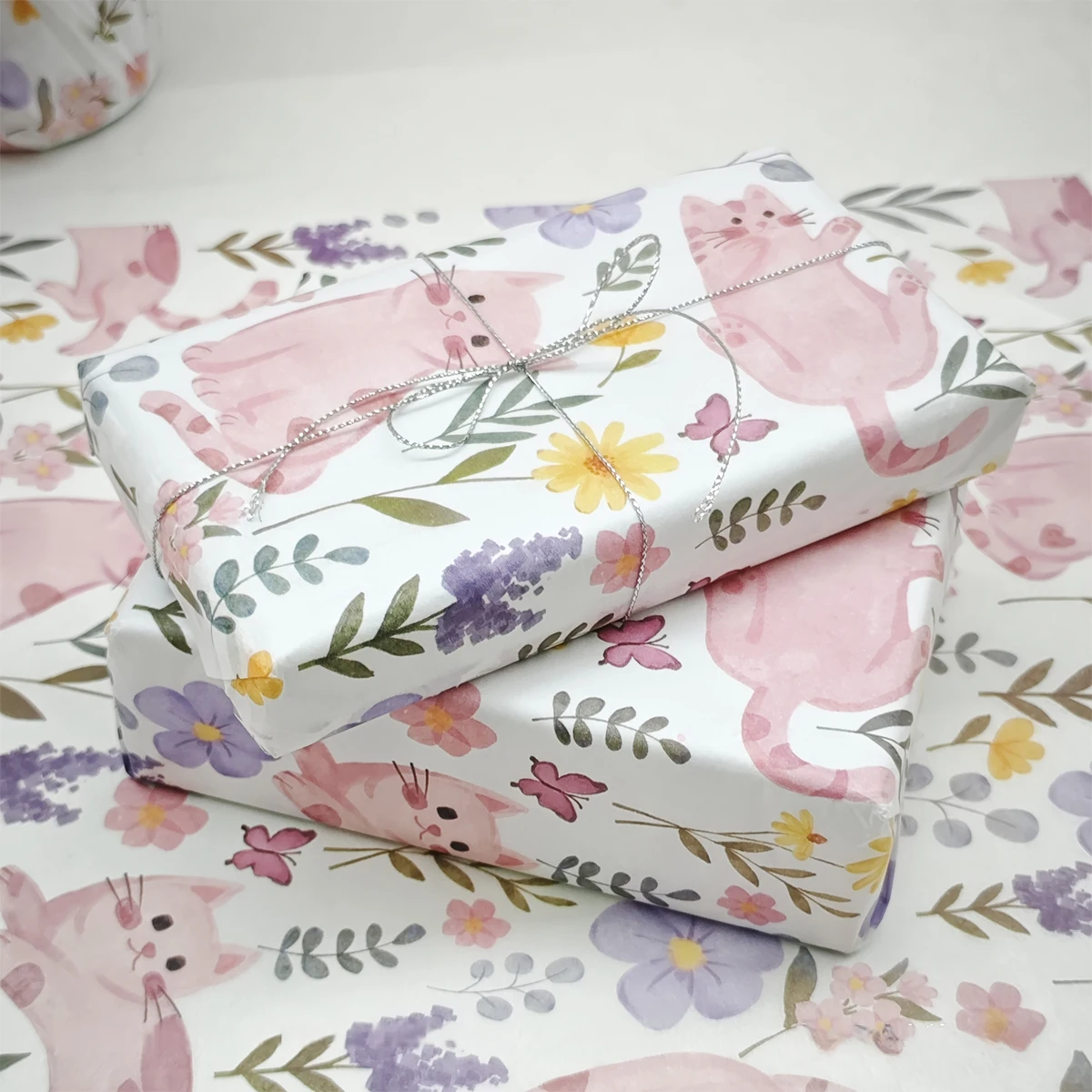 10 Sheets Flower Bush Cat Pattern Gift Wrapping Paper Perfect for Festival Bouquet Gifts, Weddings Party, Birthday Gift Wrapping