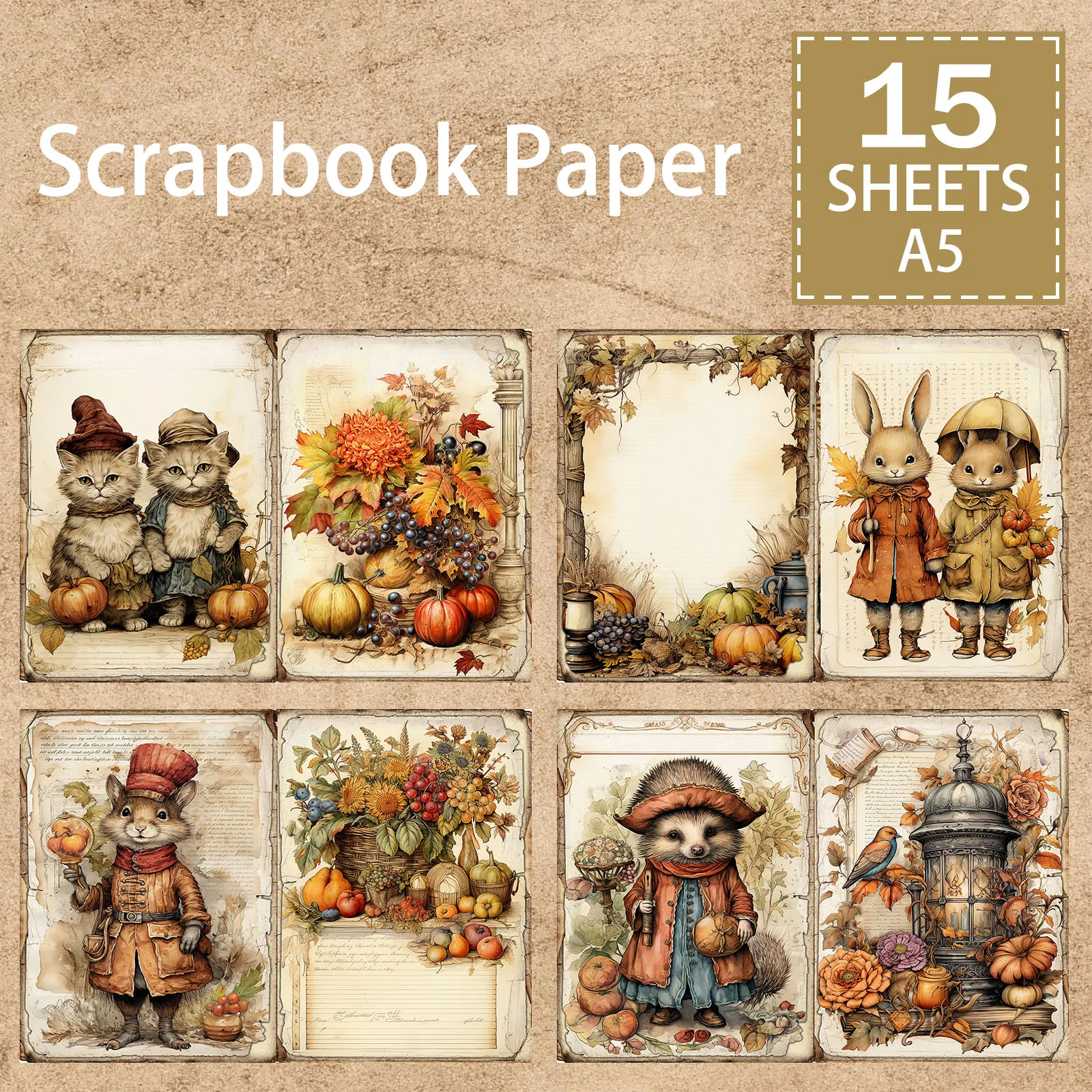 15 Sheets A5 Size Halloween Thanksgiving Pumpkin Cat Dog Rabbit Squirrel Couple Vintage Grunge Journal Planning Scrapbooking