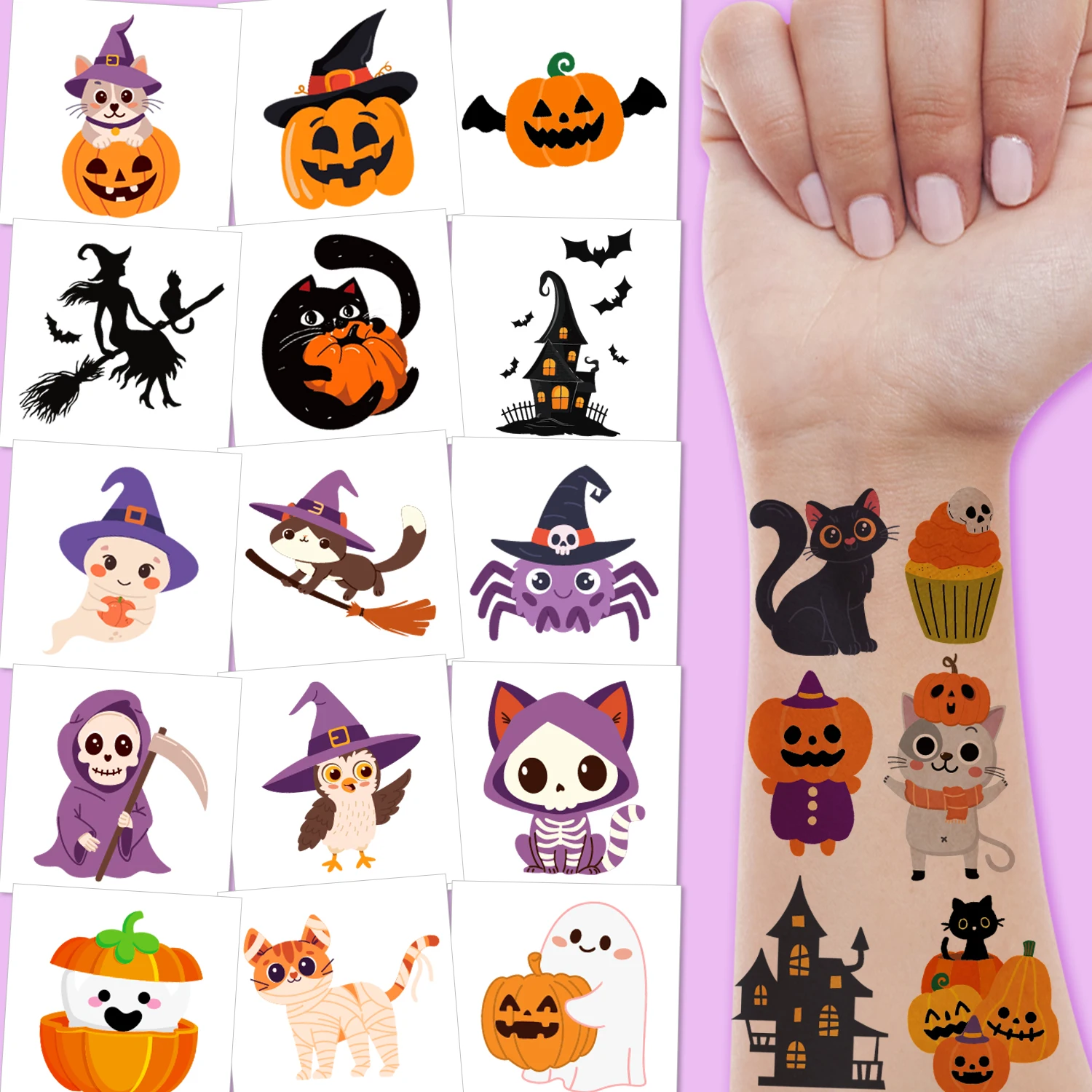 Halloween temporary tattoos, Birthday party decoration supplies, Halloween goodie bag fillers, rewards, 10 sheets