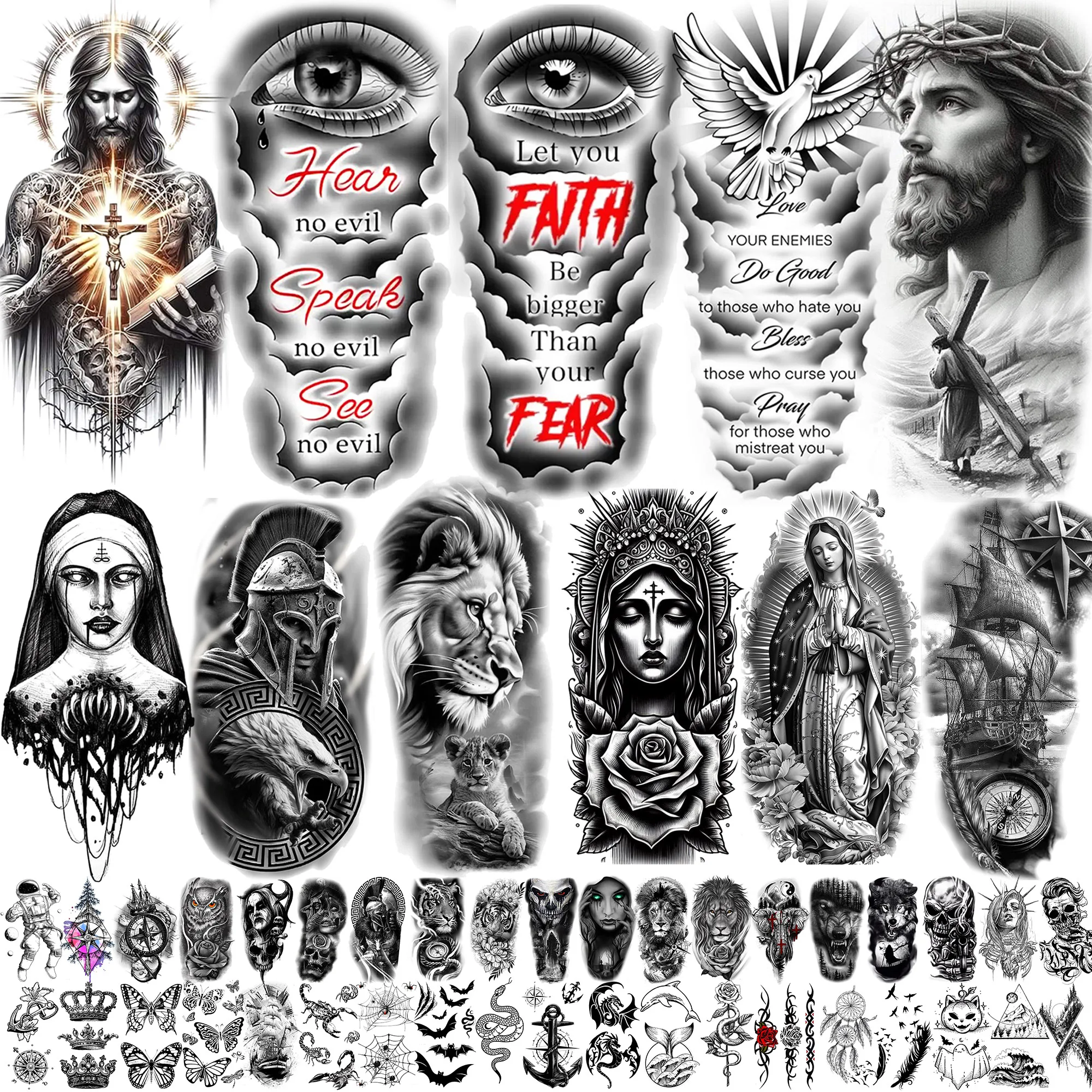 68 Sheets Jesus Pray Lion Warrior Temporary Tattoos For Men Women Faith Engraved Tatoos Waterproof Realistic Fake Tattoo Sticker