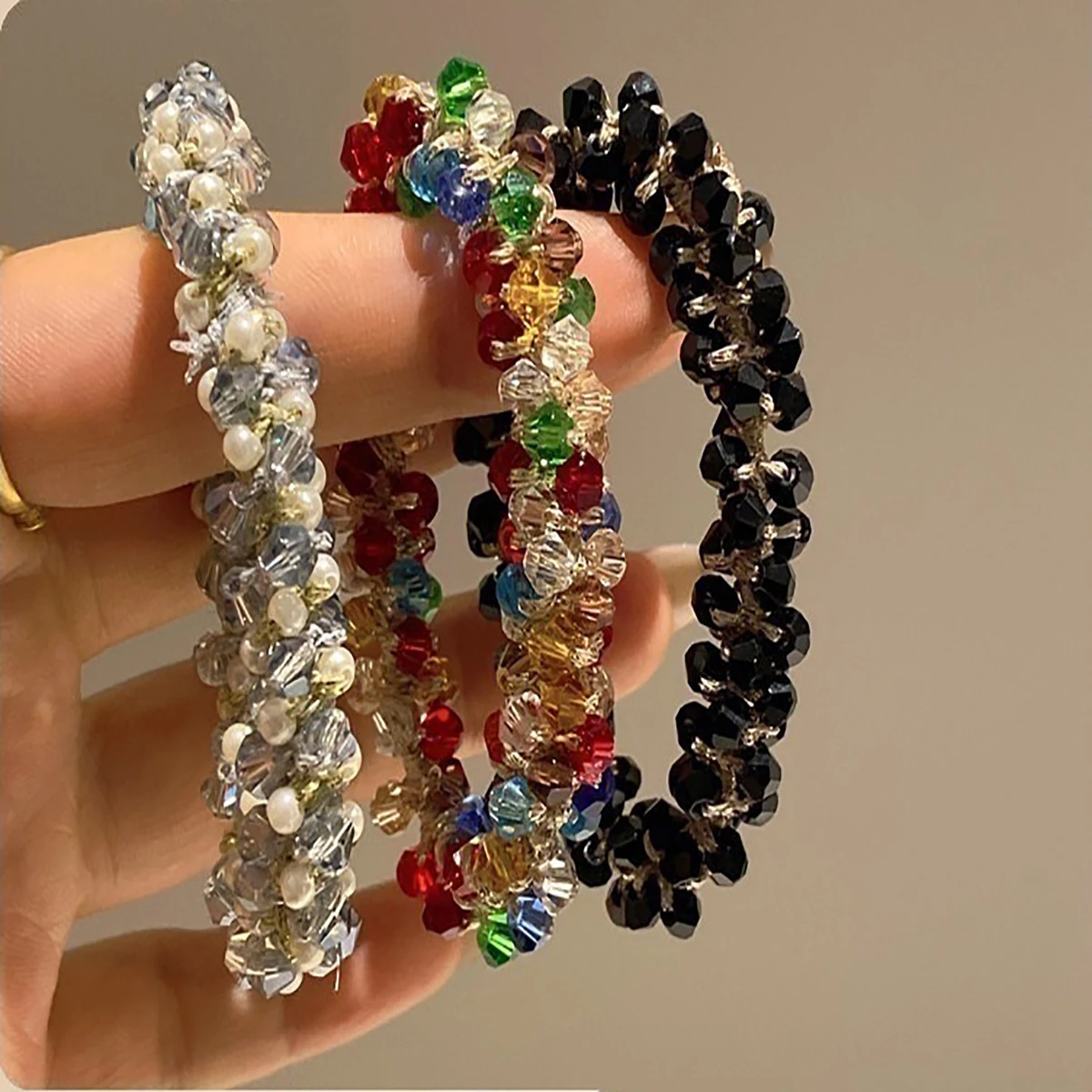1pc Pearl Multicolor Beads Hair Tie Lady Elastic Hair Rope Simple Metal Sheets Scrunchies Ponytail Holders for Women Accessories