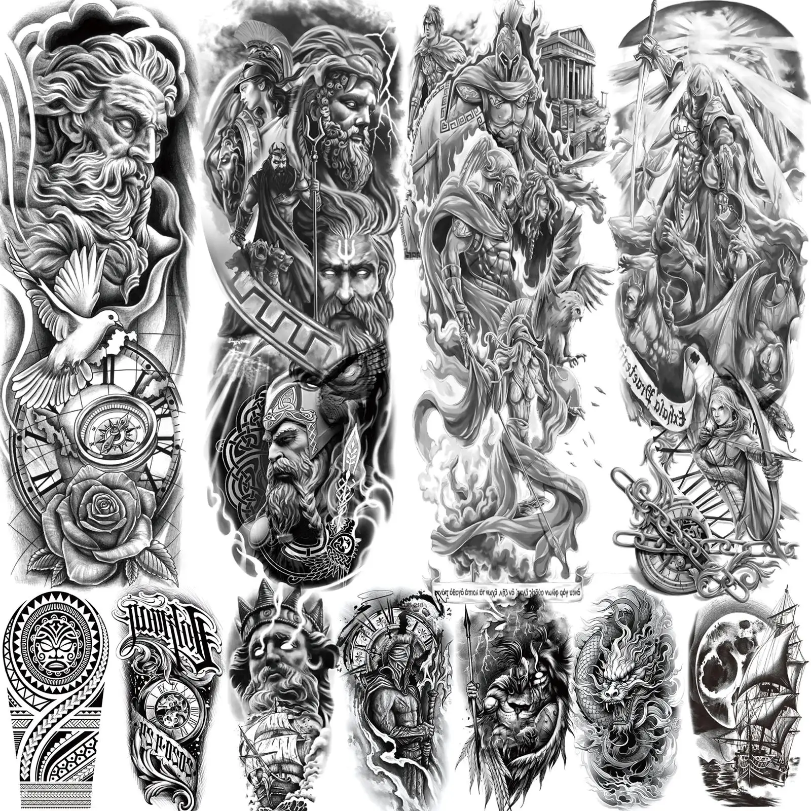 1 Sheets Zeus God Spartan Warrior Full Arm Temporary Tattoos For Men Adults Women Body Art Painting Tattoo Sleeve Fake Realistic  Read more
