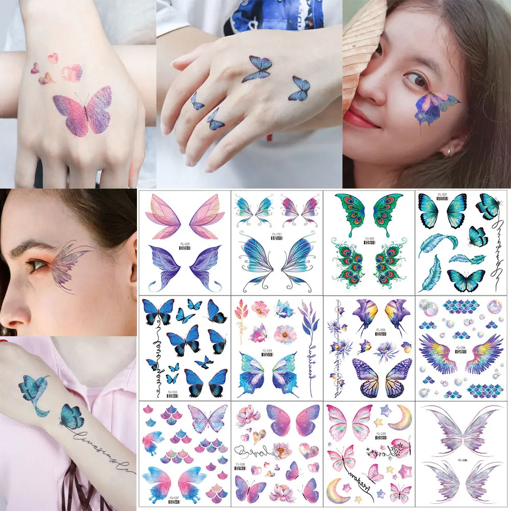 1 Sheet Flash Butterfly Temporary Tattoo Sticker for Eye Face Makeup Fairy Body Art Waterproof False Tattoo for Women  Read more