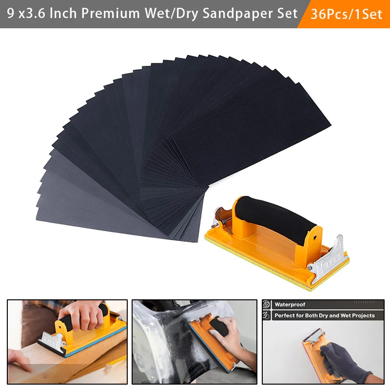 36 Pcs Wet/Dry Sandpaper Hand Sander Set 9x3.6 Inch Sheets Waterproof Sand Paper For Automotive Wood Sanding Car Metal Polishing