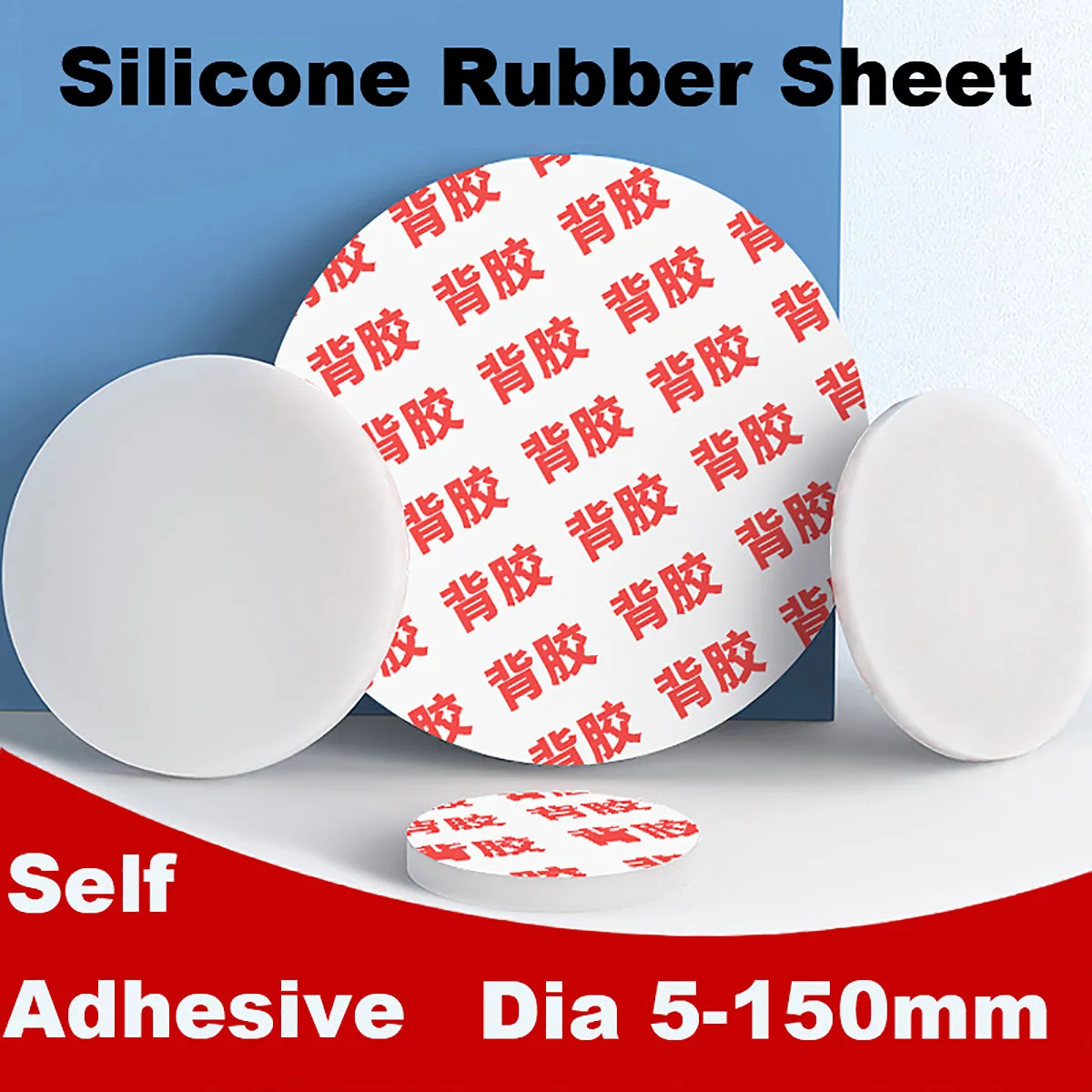 10Pcs White Solid Round Adhesive Backed VMQ Silicone Rubber Sheet Seal Gaskets Pad Dia 5/10/15/20/25/30/35-150mm Thick 1-10mm