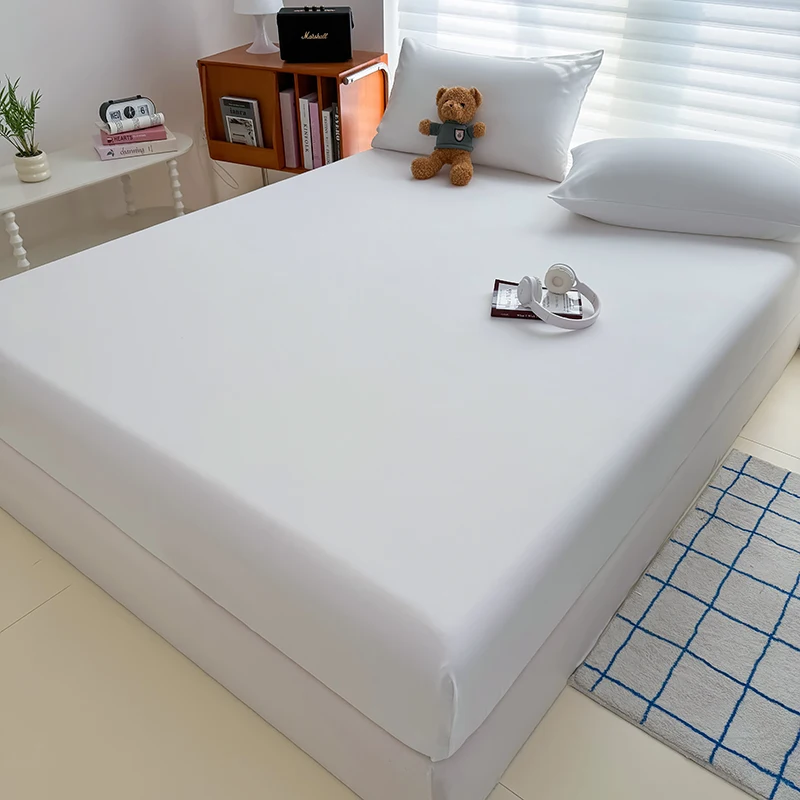 100% Waterproof Mattress Cover with Deep Pocket Solid Color Anti-mite Fitted Bed Sheet Mattress Protector Bed Cover King Queen