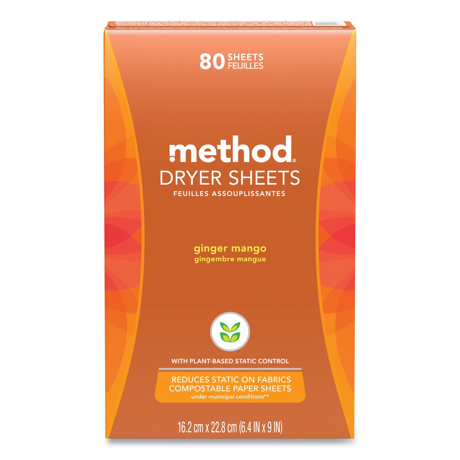 Method Products Inc. 318049 Dryer Sheets, Ginger Mango, 80/Box, 6 Boxes/Carton - Case of 6 MTH318049