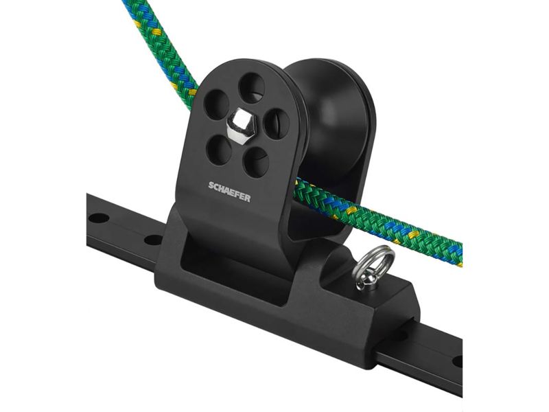 Schaefer Marine Twin Sheet Block f/1-1/4" T-Track - Black 32-97. Aluminum sheave runs on nomex/Teflon bearing for a low-friction high strength sheave. Articulating sheave allows for a proper lead. Pin stop makes adjustment simple. Specifications for...  Read more