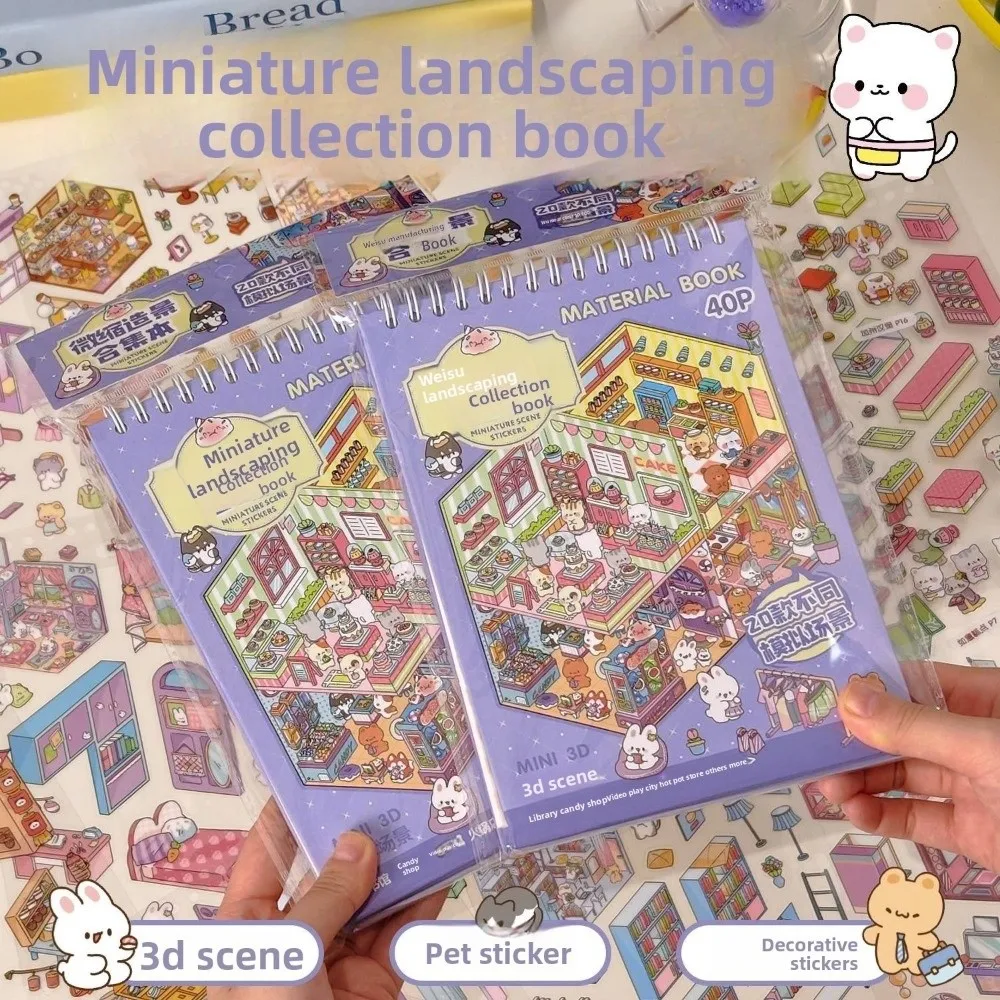 New PET 3D Landscaping Stickers 20 Sheets Scene DIY Crafts Miniature Scene Stickers Cartoon Town Sticker Book Children Activity