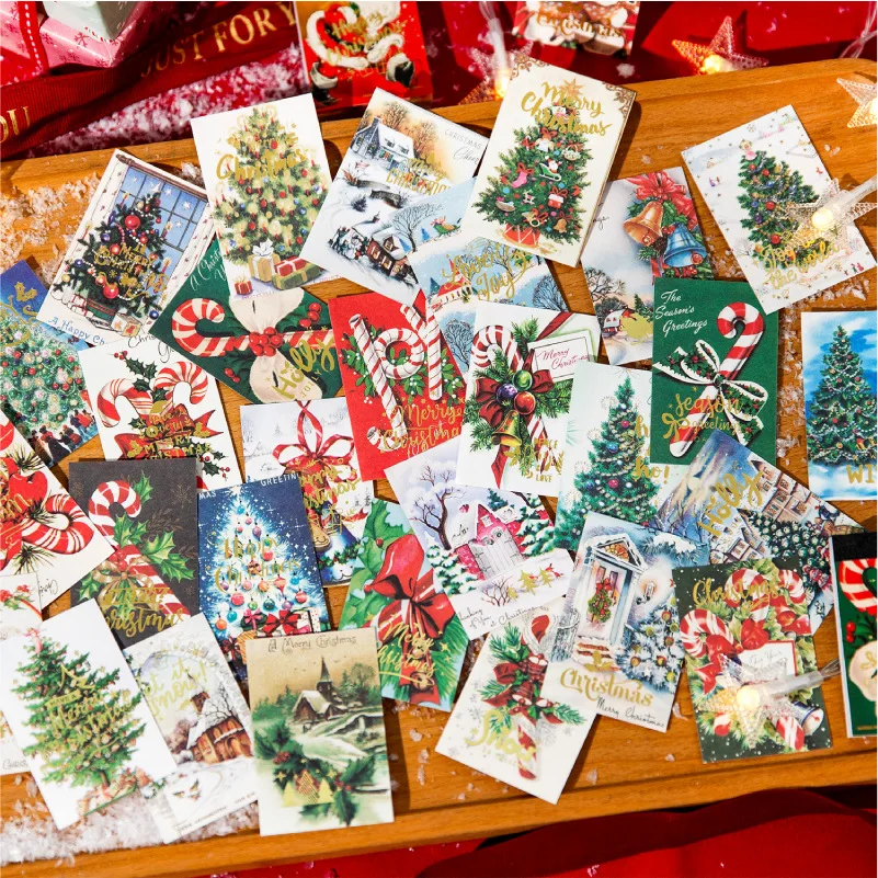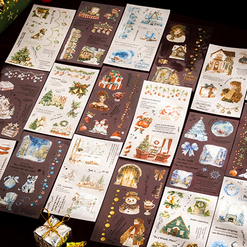 50 sheets Retro Christmas PET Scrapbooking Stickers Pack Waterproof Decoration Santa Christmas Trees Material Aesthetic Sticker