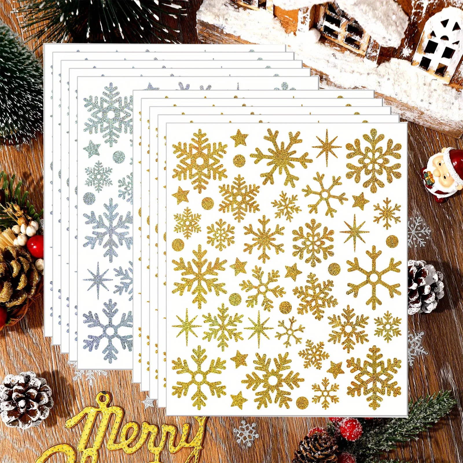 10 Sheets Glitter Gold Snowflake Stickers Envelopes Seal Decor Stickers Christmas Self-Adhesive Party Labels for Gifts