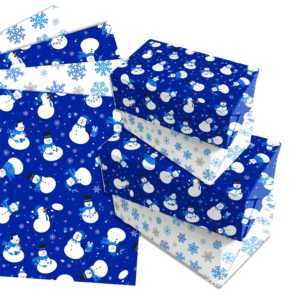 12 Sheets Christmas Wrapping Paper Navy Blue White Winter Holiday Gift Wrap with Snowmen, Snowflakes - Thick Kraft-like Paper